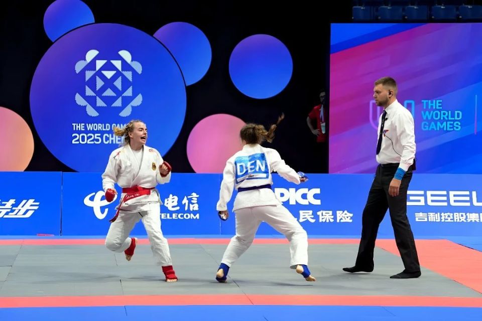 今日,成都世运会简阳赛区柔术在简阳市文体中心体育馆迎来第二个激情对决日。全天共展开男子寝技(69公斤级、77公斤级、85公斤级)、女子搏击(52公斤级、57公斤级、63公斤级)及团体表演套路三个分项、七个小项的争夺,48名运动员经过总计71场比赛,激烈角逐出7枚金牌。