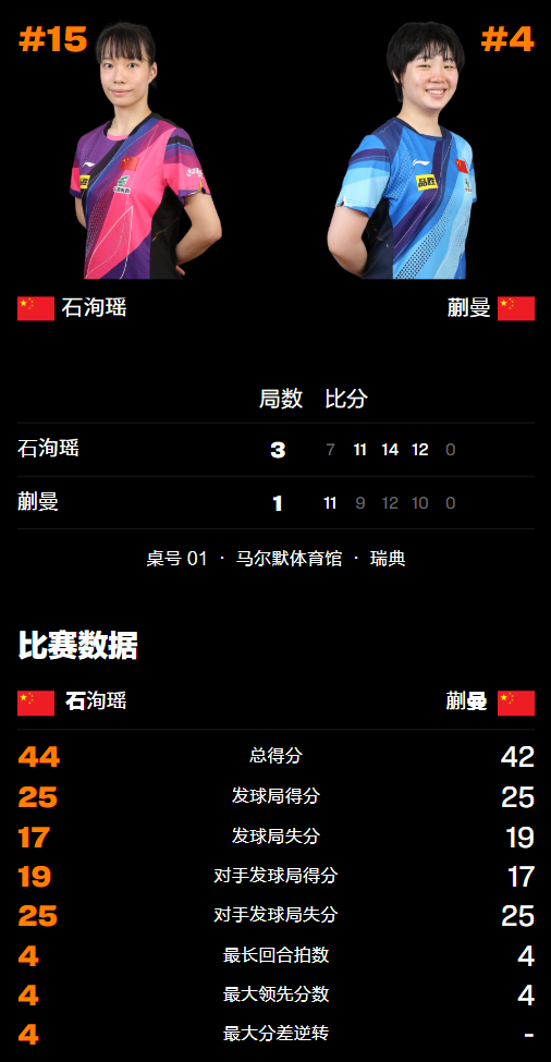 北京时间8月22日凌晨,乒乓球WTT欧洲大满贯瑞典站再次爆发中国队内战,国乒主力蒯曼遇到了最近2次零封自己的队友石洵瑶,结果此前负多胜少的蒯曼又一次落败,苦战4局后1-3被逆转,石洵瑶则强势晋级女单8强,约战日本主力大藤沙月,详细战况请看下文。